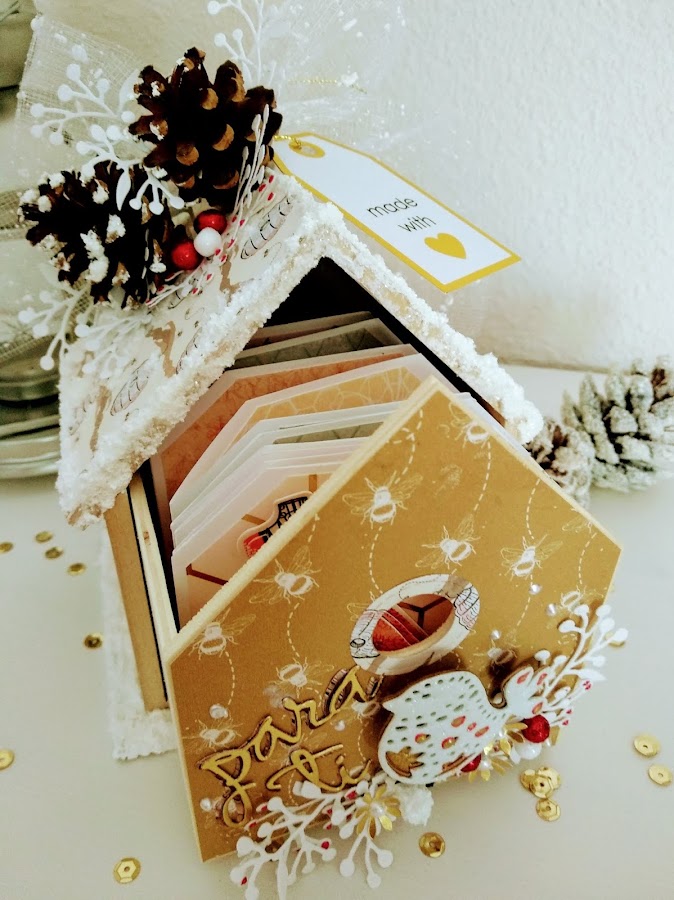 Para la primera colaboración decidí decorar una casa-nido de madera que guarda en su interior un miniálbum monísimo.