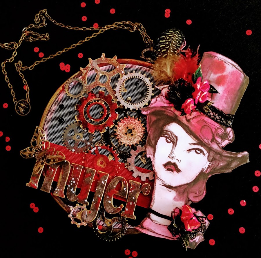 Para la segunda colaboración me arriesgué mucho, ya que me decidí a alterar un bastidor con técnicas Mix Media (que no tengo mucha idea precisamente) y estilo Steampunk, pero los de MILBBY se merecen el esfuerzo.