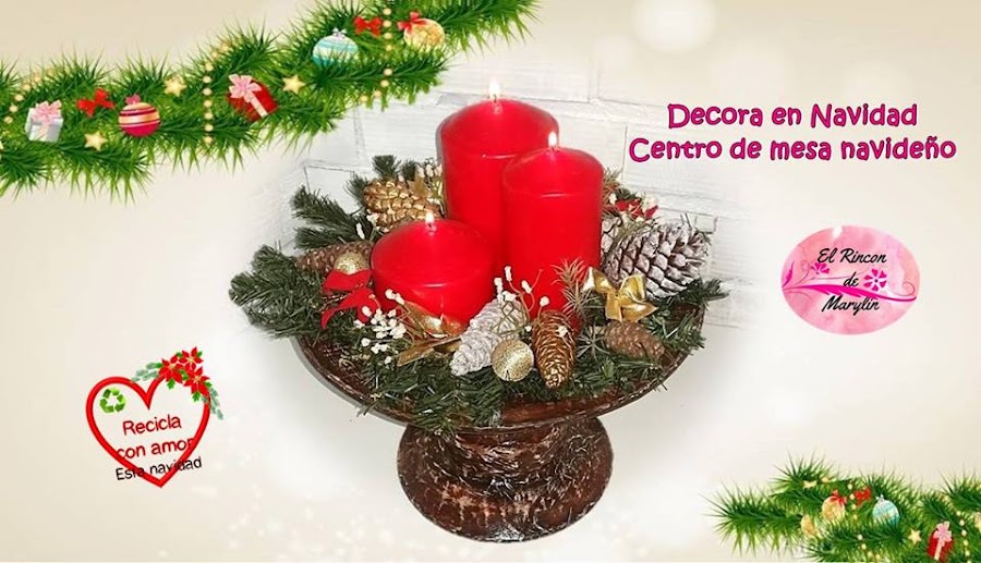 El Rincon de Marylin. Decora en Navidad.nos enseña a realizar este sorprendente Centro de Mesa Rustico Navideño