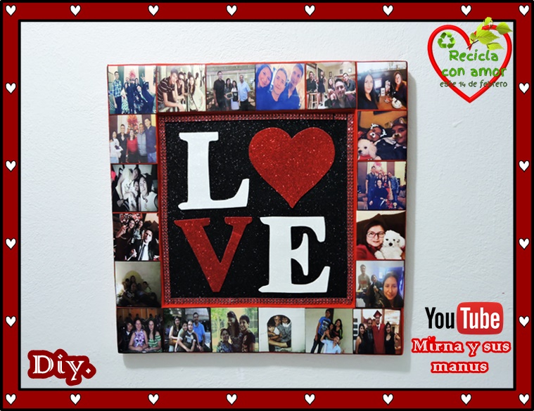 Y nuestro lindo trabajo Cuadro Collage para este dia del Amor y la Amistad o para el dia de la Madre, super sencillo de hacer y queda muy lindo para un padrisimo regalo... Yo lo realice para tenerlo en mi cuarto de trabajo y asi ver a mi Adorada familia cada rato.. Je je .. Bueno esperando y te guste mi trabajo y que me ayudes y compartas me despido de ti tu servidora Mirna Gutierrez del canal Mirna y sus manus... Los quiero mil .. Besitos que tengan una excelente tarde.. Comparto mi foto y mi video..