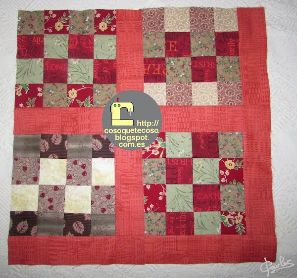 Aunque he tenido que recurrir a "falsarius" e incorporar otras telas porque cada vez que la probaba en mi cama me faltaba una fila más. Creo que no se nota mucho, lo malo es que he tenido que usar mis "telitas" del Dear Jane.