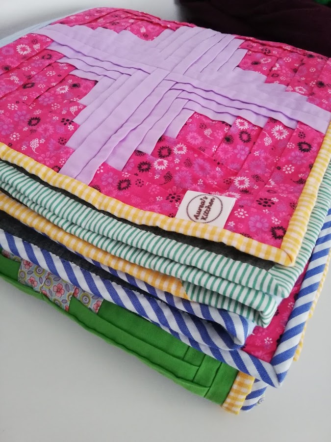 Tenía las telas cortadas así que sólo hizo falta decidir la posición de cada bloque.