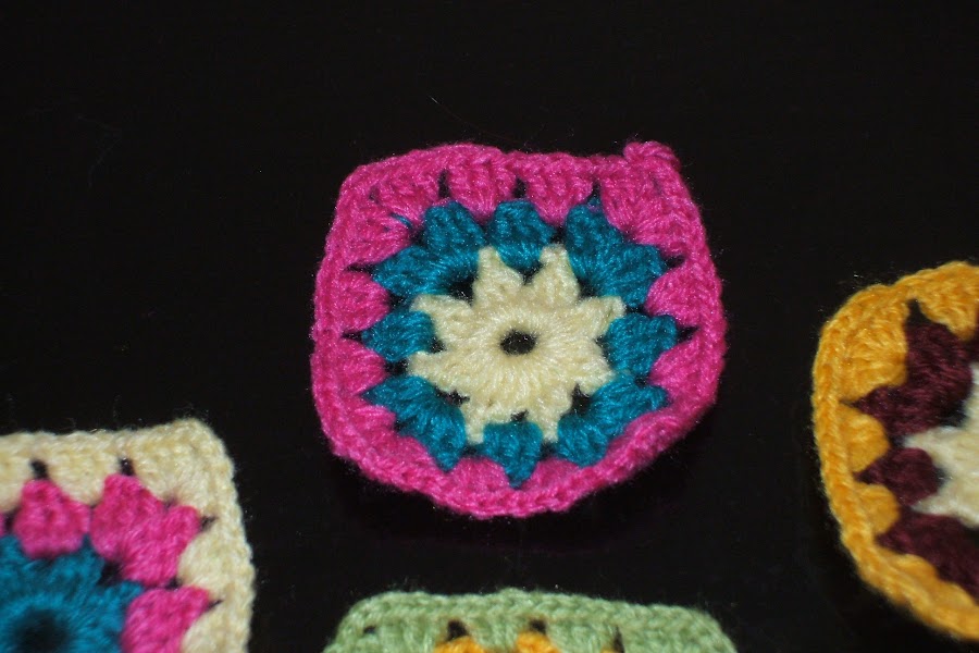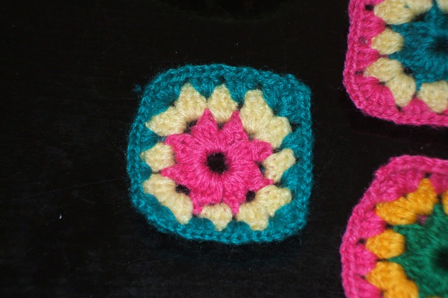 Este es el primer paso hacer cuadrados pequeños que luego iremos pegando los unos a los otros, para pegarlos usaré una lana negra que resaltará los colores y unificará la colcha.