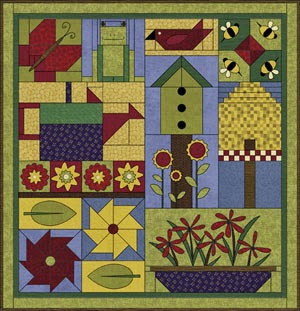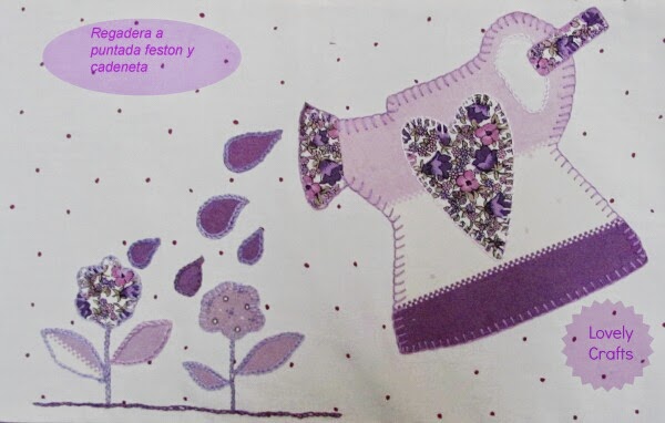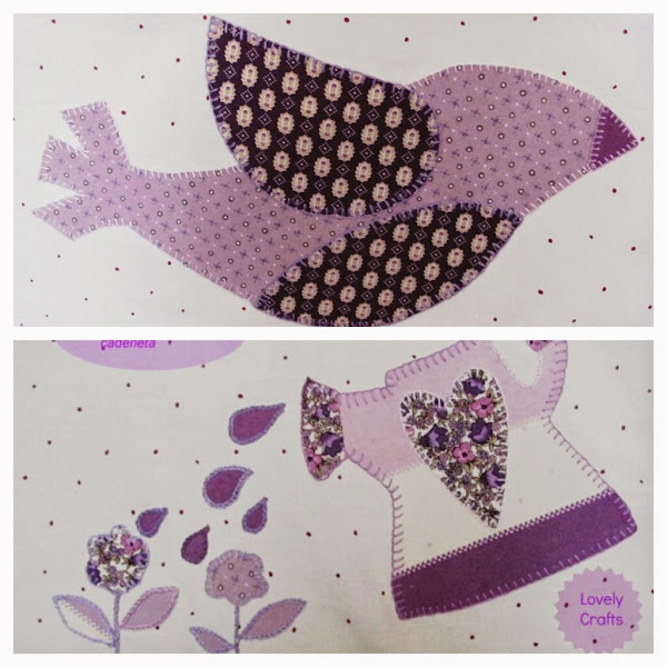 Quise adaptar también los dibujos: que fueran mas infantiles, asi que sustitui ...abejas por conejos, añadi.. una paloma, pájaros..una regadera...para que fuera "el jardín de primavera " y abrigara en los frios dias de invierno a quien iba destinada y diera mas dulzura a la colcha.