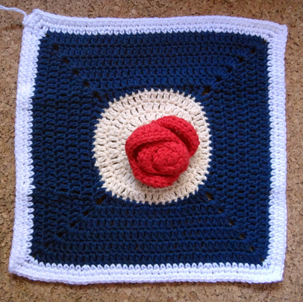 Una vez hechos todos los bordes de cada cuadro individual, vamos a unirlos entre sí con una vuelta de punto bajo. Yo lo que hago es unir los cuadros por filas horizontales, y luego las filas entre sí.