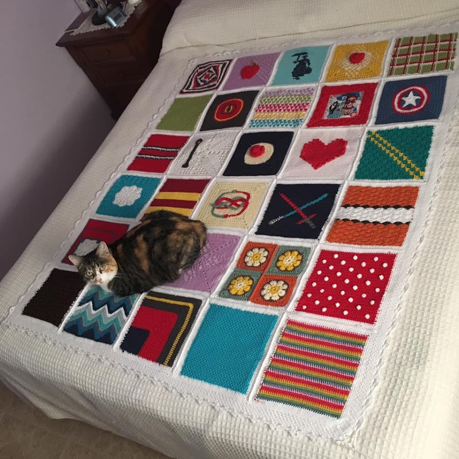 Cortad y rematar el hilo. A estas alturas ya deberíais tener todos los hilos sueltos escondidos por entre el tejido. Si no es así, esconded los que os hayan podido quedar con ayuda de una aguja lanera y ya tendréis vuestra colcha lista para disfrutarla.