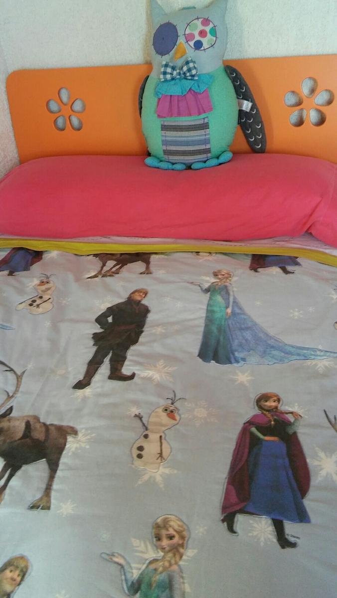 El invierno llegó y la cama de mi pequeña se vistió con los colores de su película favorita Frozen.