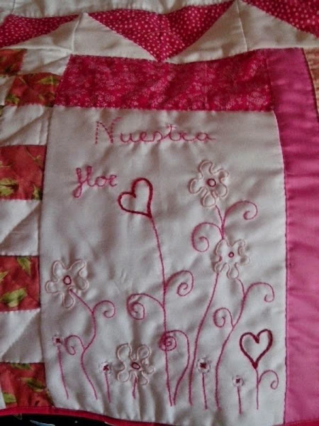 Las flores, nacen en esta colchita por todos los rincones y, también, los corazones para que le llegue a Crisitna el cariño con el que le encargaron este bonito regalo y el cariño con el que se le ha hecho. Como siempre digo, espero que le llegue y lo disfrute con sueños tan bonitos como debe ser ella.