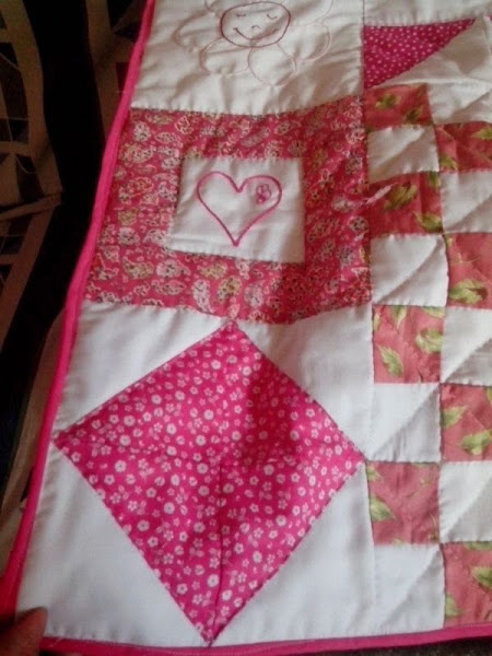 Las pautas que me dieron; que fuera rosa y que tuviera flores. A ser posible personalizada con el nombre. Me puse manos a la obra, basandome en la colcha que le hice a mi niña (lo podeis ver en este post https://www.facebook.com/pages/Cosas-de-Loly/392258104237248 ) Fui haciendo poquito a poquito, ya avisé que tardaría y, como casi siempre, el trabajo me va gustando más según voy avanzando en la labor.