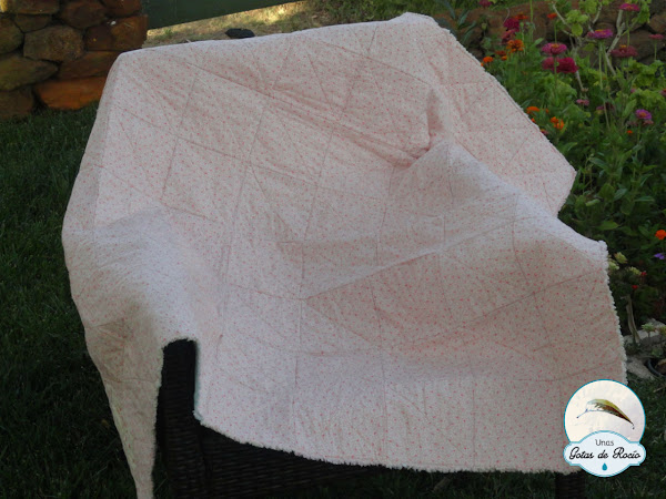 Mi conclusión sobre la técnica es que efectivamente es de las más rápidas que hay, en 3 o 4 tardes bien aprovechadas se puede tener la colcha lista. De costura tiene más bien poco, casi todo son preparativos. La espera frente a la secadora es inquietante, ¿se habrá ido a la porra tanto trabajo? Pero noooo, que el resultado es chulísimo. Por cierto, ¡¡gracias Mati!!, una muy buena mañana que echamos mientras la colcha daba vueltas y vueltas.