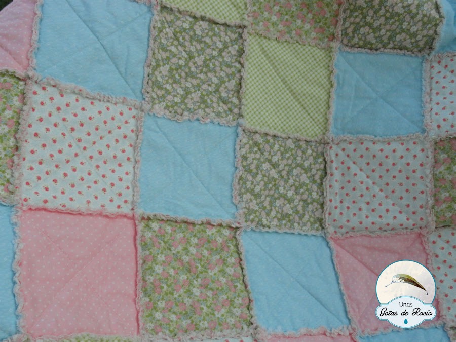 Pues bien, como la nena ha nacido y ya he entregado el regalo, al fin puedo enseñaros la colcha rag quilt que le he hecho para la cuna.