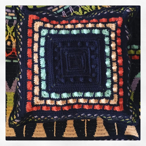 Inspirándome en parte del patrón, hice este cojín con los hilos sobrantes.