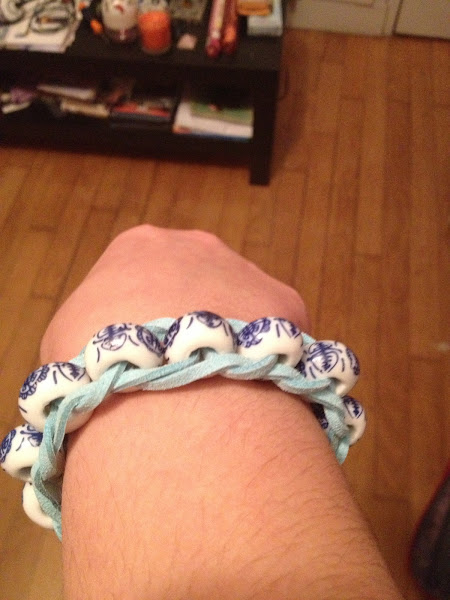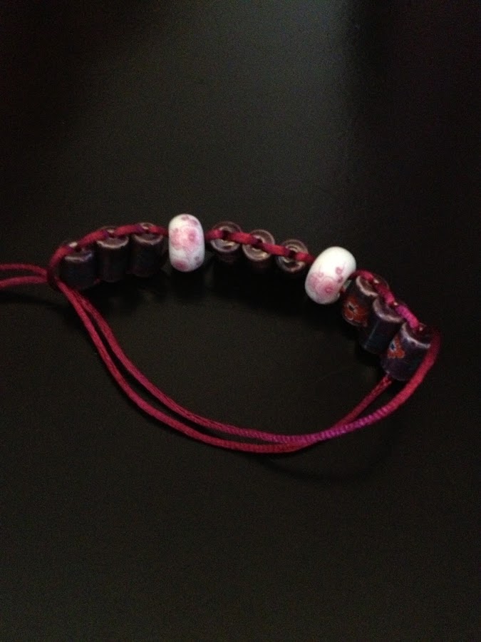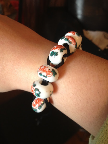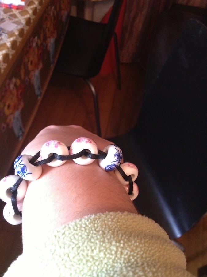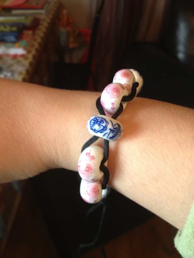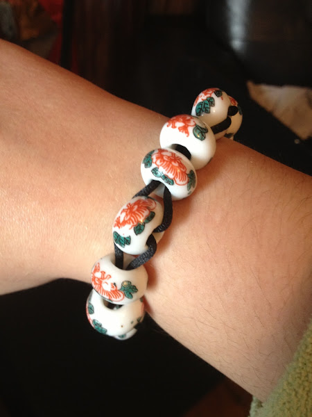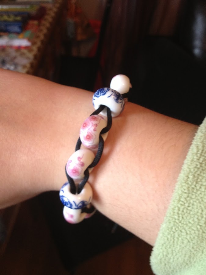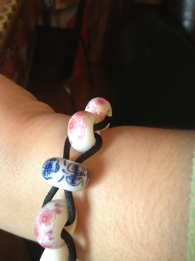 Para esta colección pensé en hacer pulseras con cuentas y piezas de porcelana, y se me ocurrió esto (las pulseras de abajo)