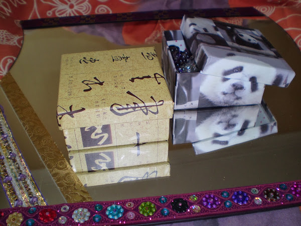 Y con la compra de los pendientes dinastía y de otro artículo más entrego de regalo una cajita muy chula con dibujos de pandas o de letras chinas