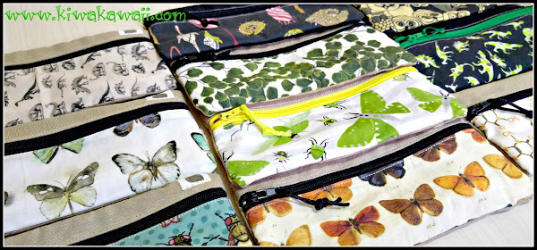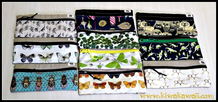 Esta colección de estuches es para mi gusto la más bonita de las que he cosido hasta ahora; los búhos me chiflan, aunque los favoritos suelen ser los de mariposas.