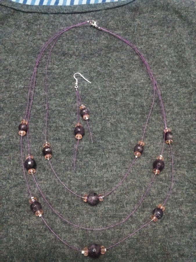 COLORES: DOS TONOS DE MORADO Y NEGRO FANTASÍA ( con hilo de hebra plateada)