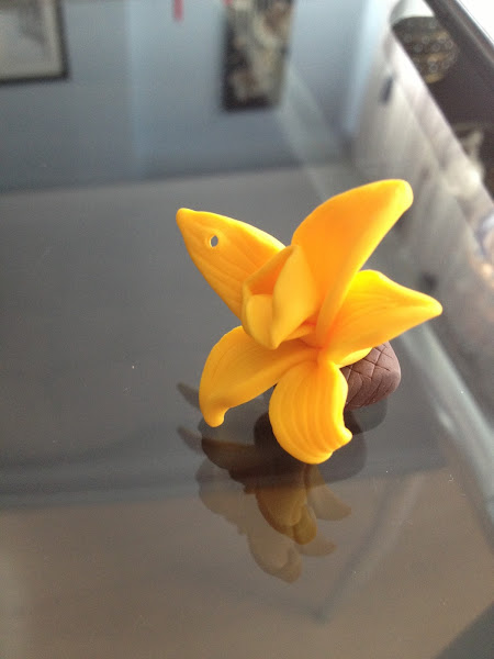 Flor de la Vainilla realizada en fimo, modelada totalmente a mano y sin moldes