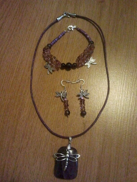 -Pulsera de abalorios y 5 bolitas de piedra amatista y estas monísimas libélulas
