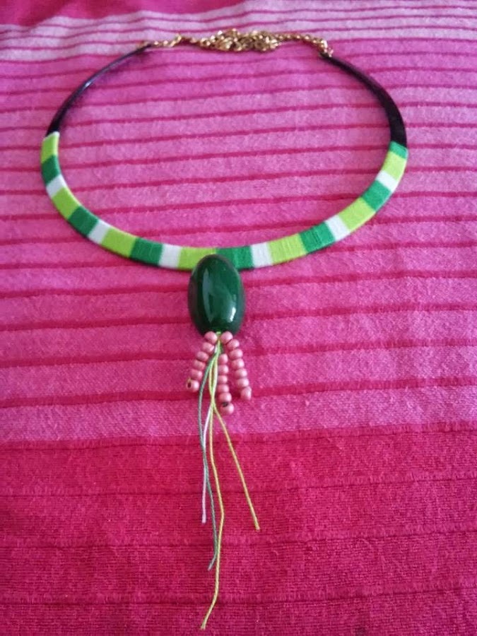 (si encuentro alguna pieza parecida o que me llame la atención), o por una piedra natural tipo un ágata verde. Así que puedo personalizarte la gargantilla con una piedra de tu elección, en tonos verdes, de algún otro color que le contraste o por la piedra de tu signo zodiacal.