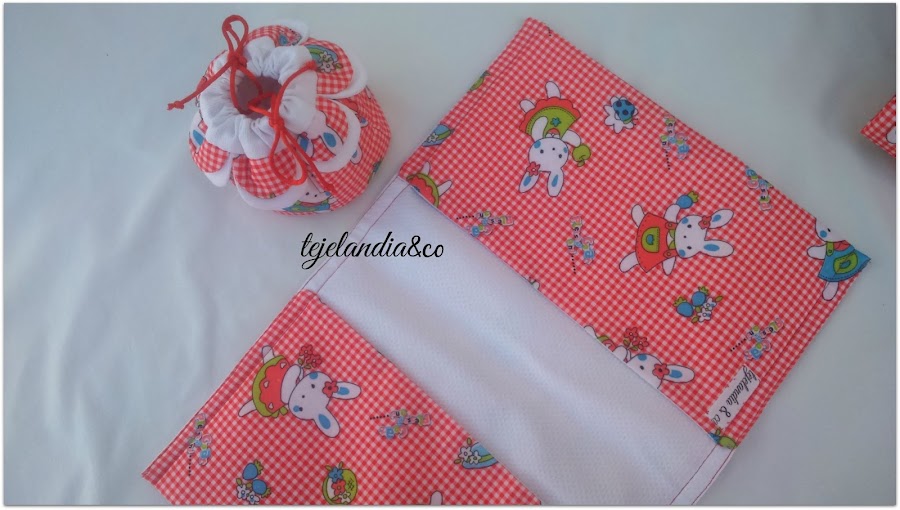 Ya tenemos otra colección de básicos accesorios para bebé terminada. Esta menos clásica. La tela de muñecos de color rojo es de algodón y va combinada con piqué de color blanco. para las mamis que se atreven con colores fuertes y telas divertidas.