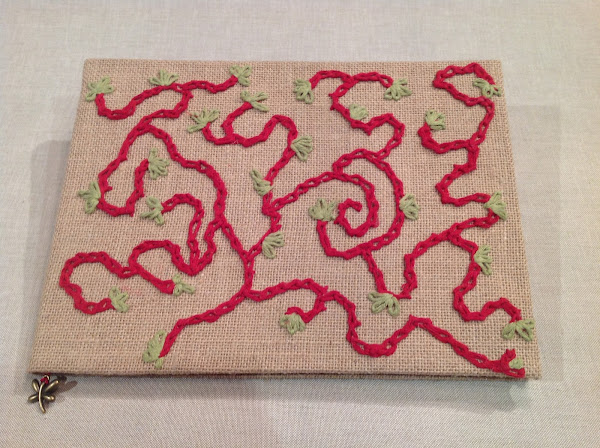 Libro de firmas para boda realizado en arpillera y bordado a mano