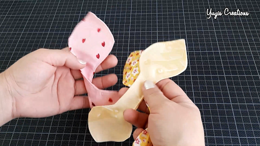 Para cada coleta se debe usar dos piezas que coseremos entre sí enfrentando los derechos y dejando un espacio sin coser para darle la vuelta.