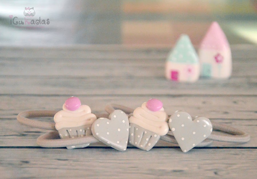 Para compensar, me puse con el gris y le hice unos cupcakes y unos corazones.