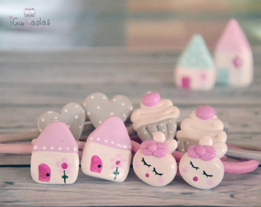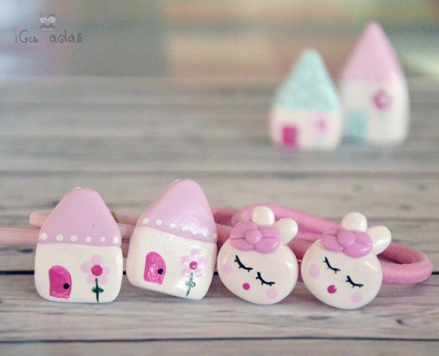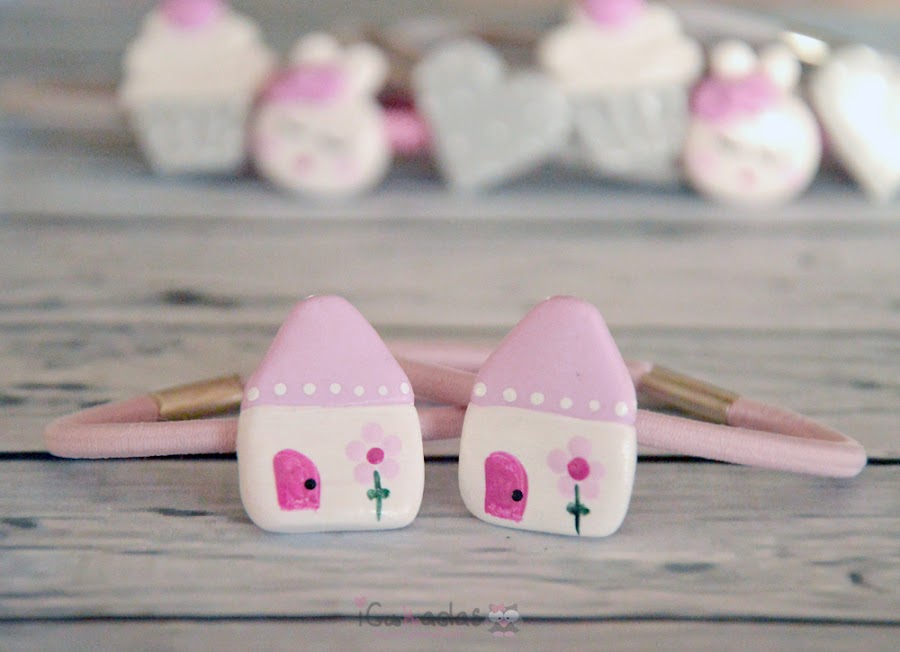 Después se me fue un poco de las manos y le hice unas casitas rosas, que si, que son de fimo, pero pintadas a mano, y eso ya es mucha tarea, pero quedaron tan cukis.