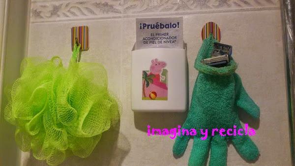 Le he añadido un dibujo de peppa pig, que será temporal porque en la ducha a ver cuanto dura y será sustitiudo por una pegatina de verdad de peppa para que mi sobrino pueda guardar sus cositas dentro, por supuesto se pondrá a su altura, asique si tenéis niños esta idea os puede servir para que sean más ordenados y guarden sus cosas en las habitaciones o en el baño el cepillo de dientes por ejemplo.