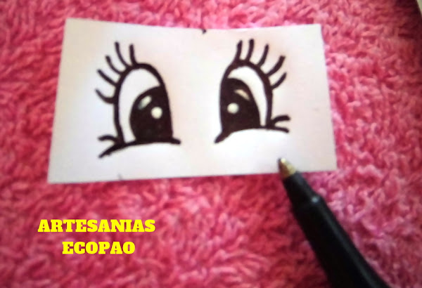Puedes usar unos ojitos adhesivos de los que venden, o puedes dibujar los ojitos como gustes en una hoja, recorta y pega.