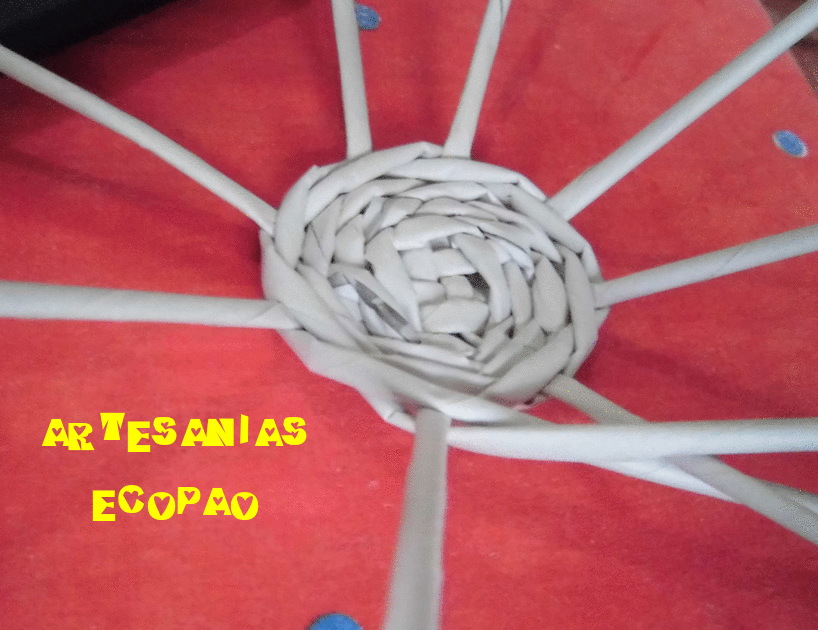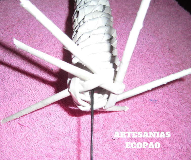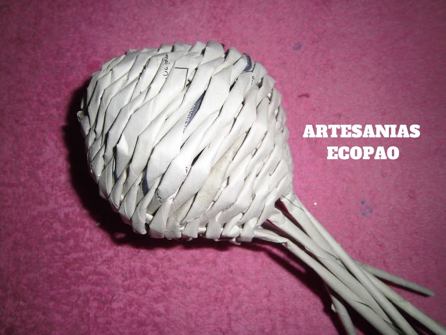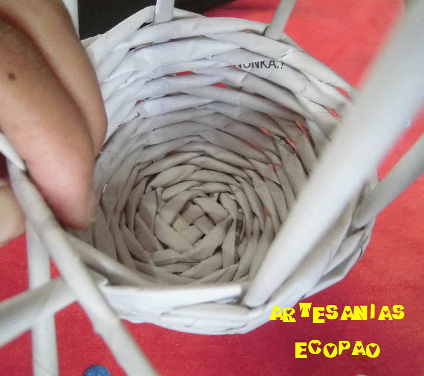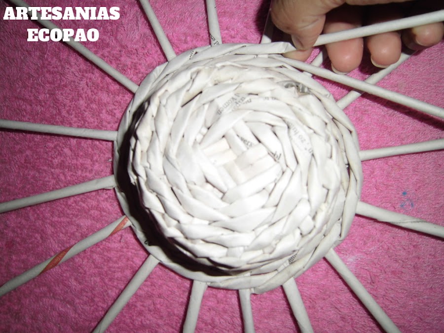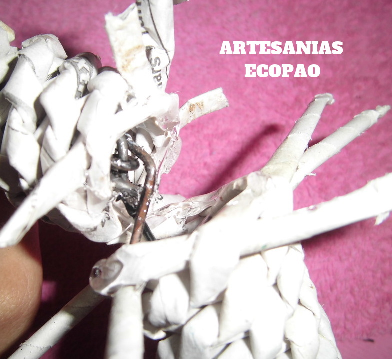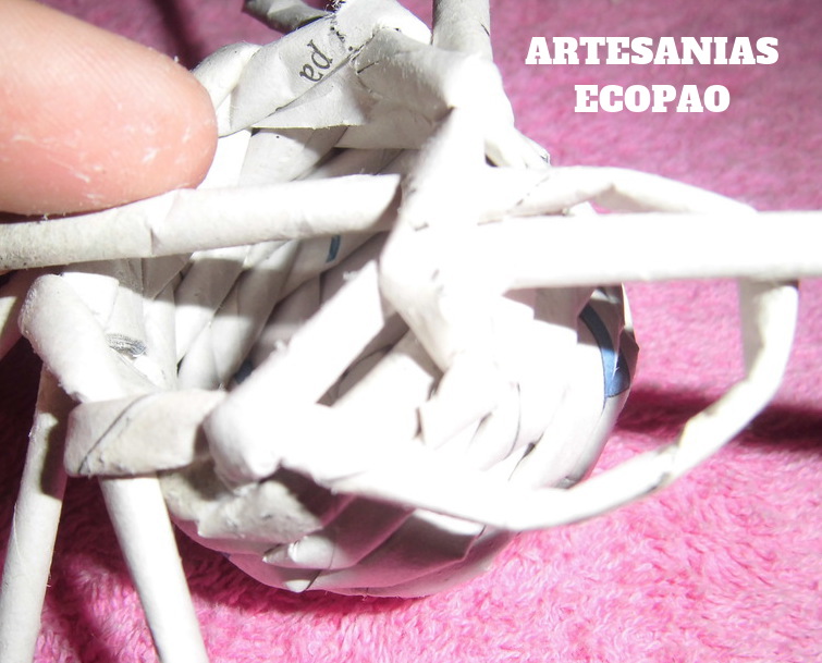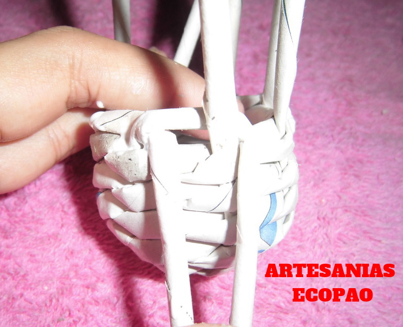 Repite el mismo tejido del aro. Un rollito, sobre el siguiente.