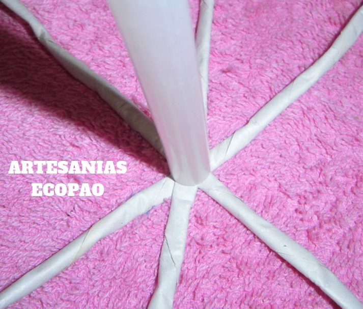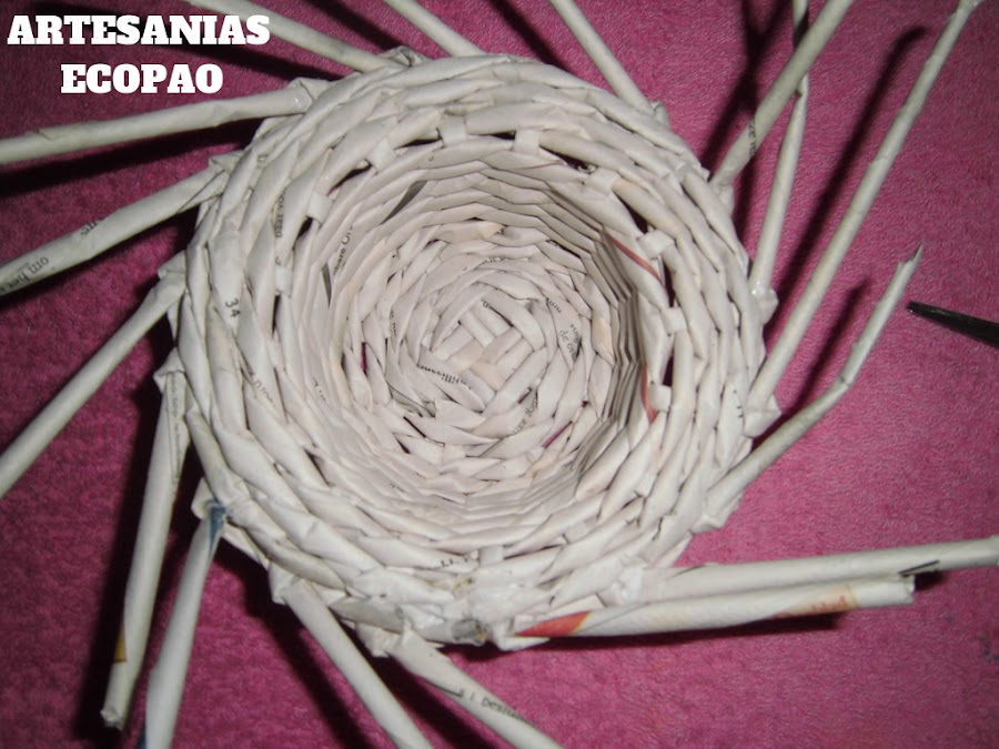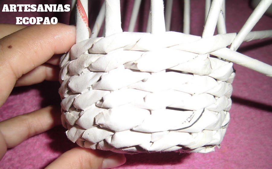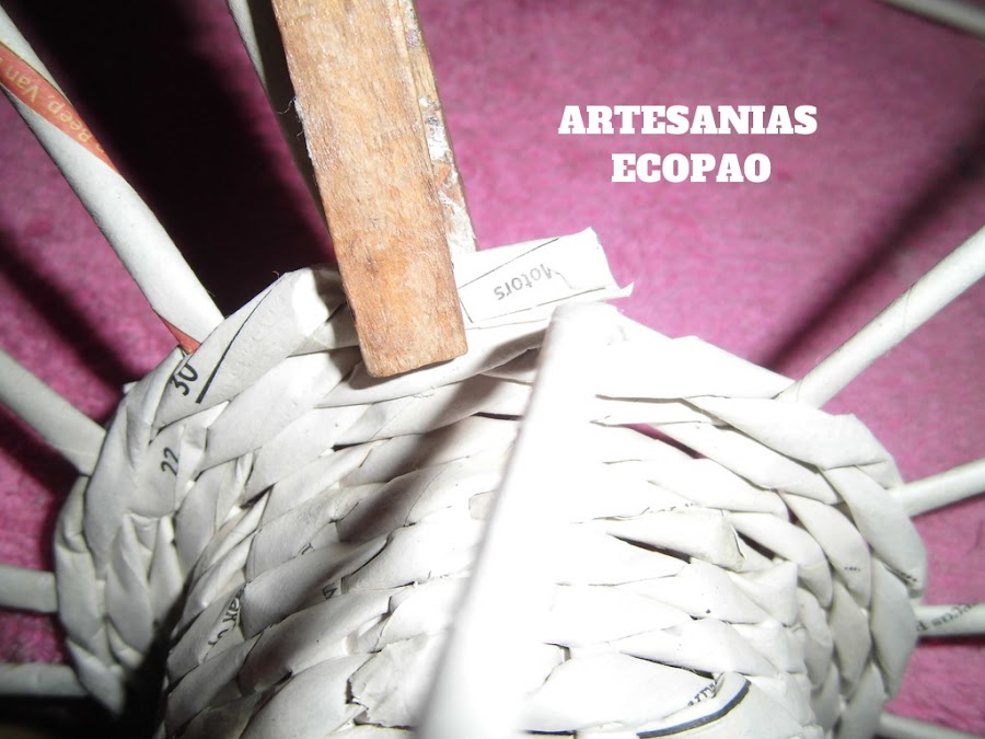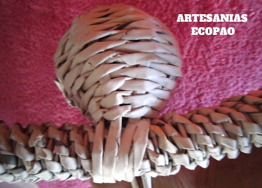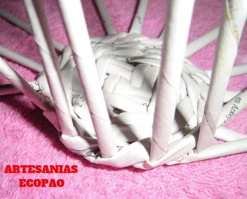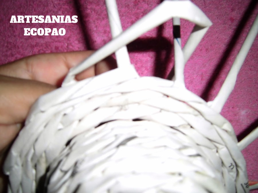Repite el mismo tejido del aro. Un rollito, sobre el siguiente.
