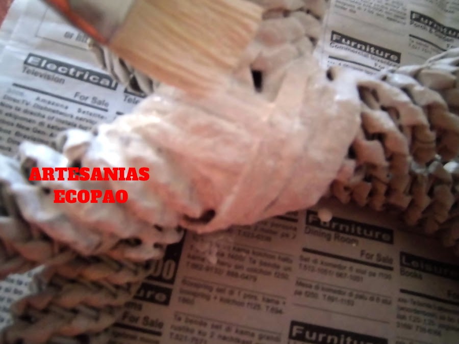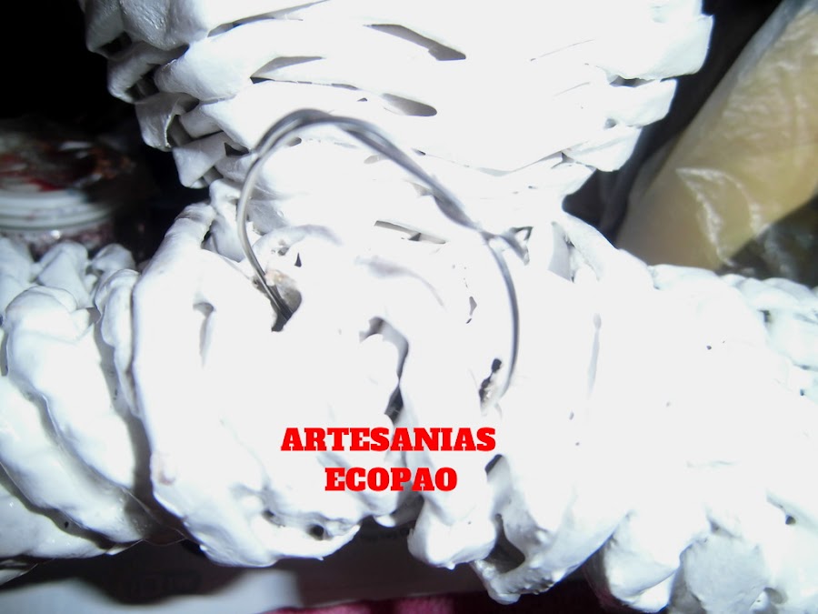Con ayuda de los dedos dale forma redonda al aro y aplica suficiente pegamento diluido en un poco de agua. Repite 2 veces mas, para darle firmeza.