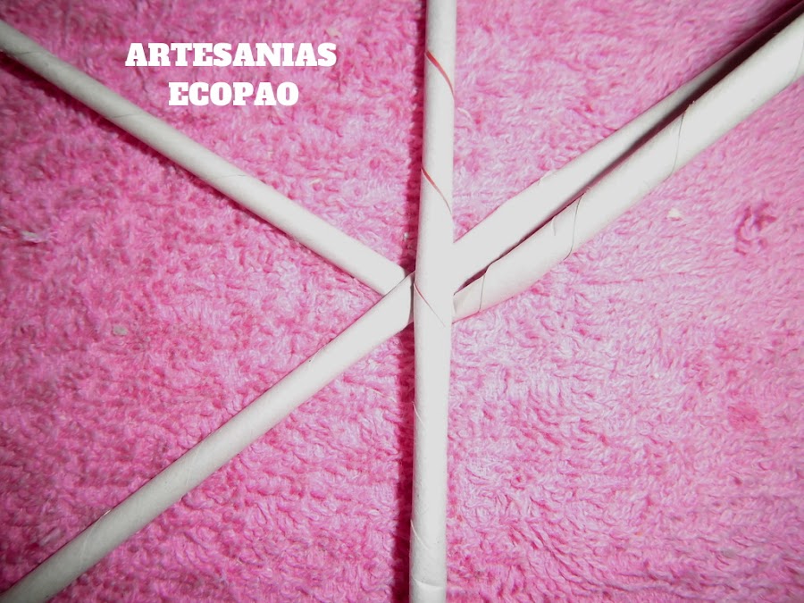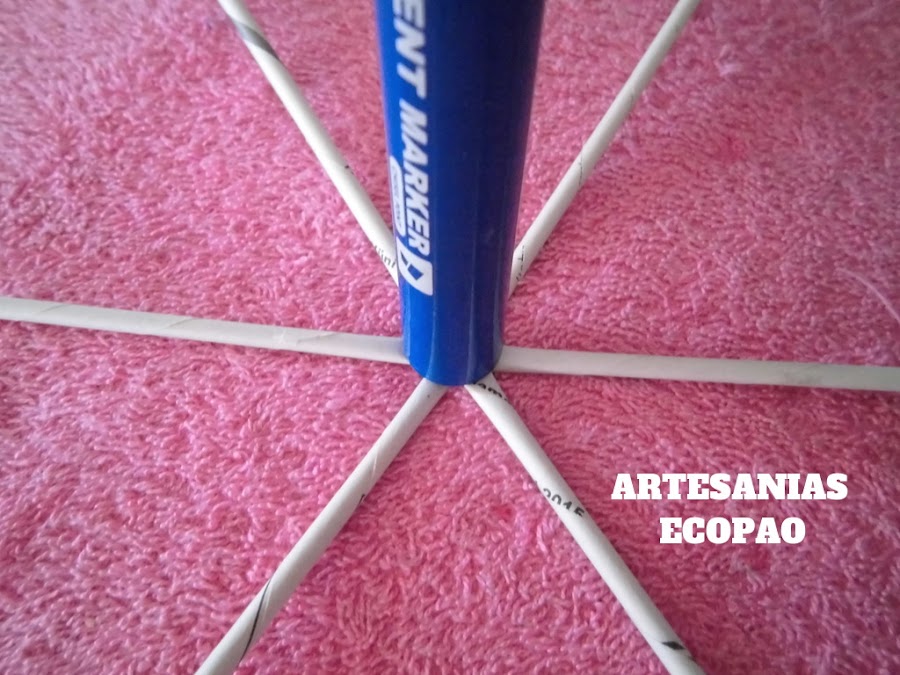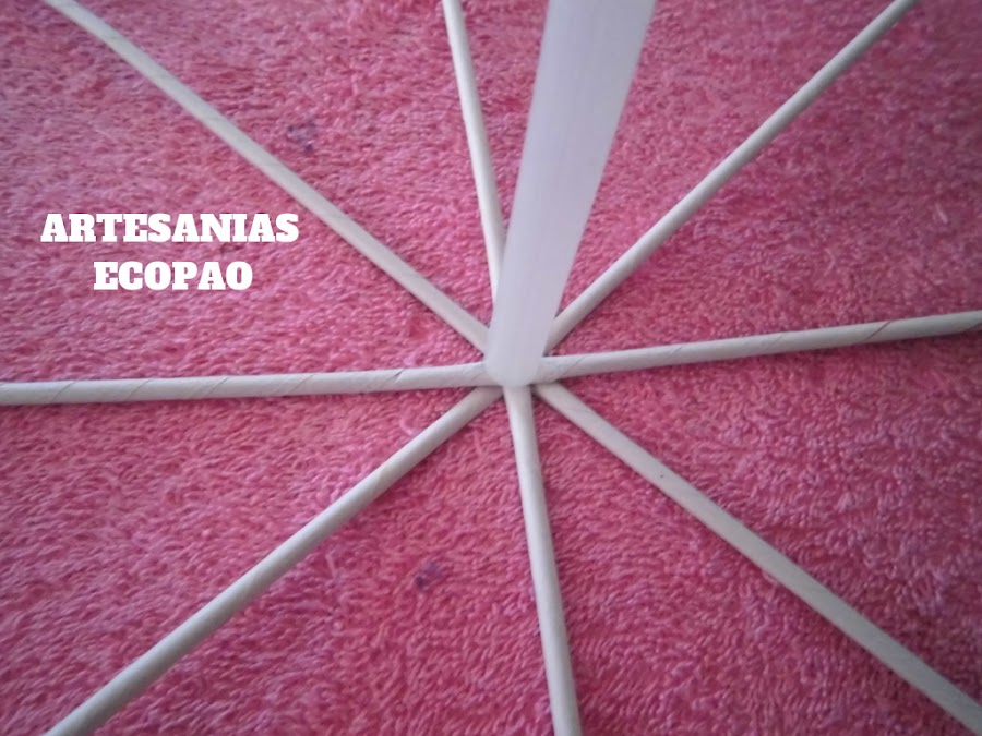 Aplica pegamento. Cruza los parantes, llevándolos también, hacia el lado contrario.