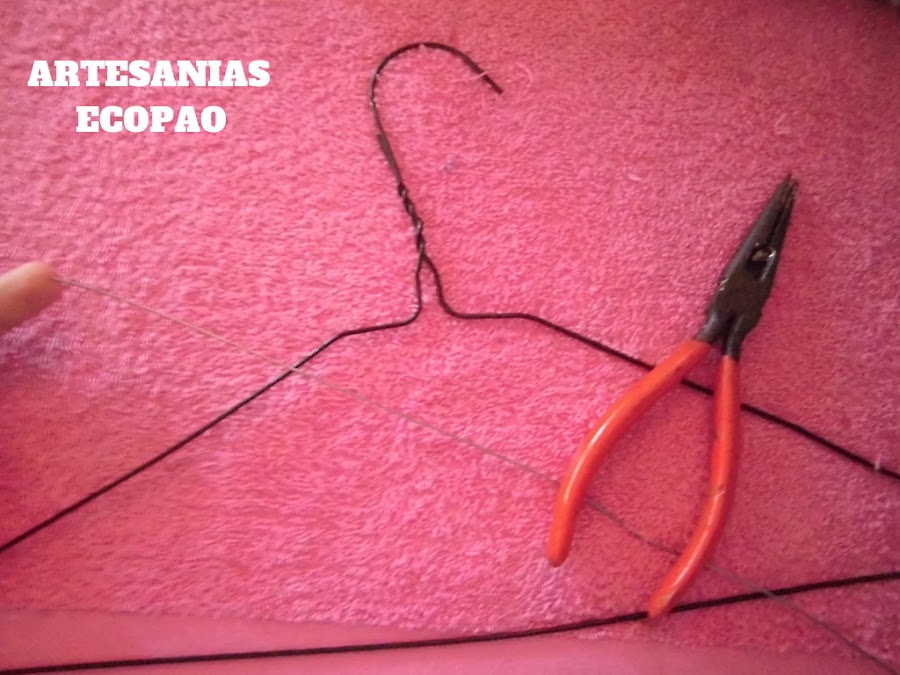 Puedes usar el alambre a tu gusto, preferiblemente que no sea tan delgado. El alambre que tenia en casa, es algo delgado, por eso utilizare un gancho viejo de ropa, como lo muestro en la foto.
