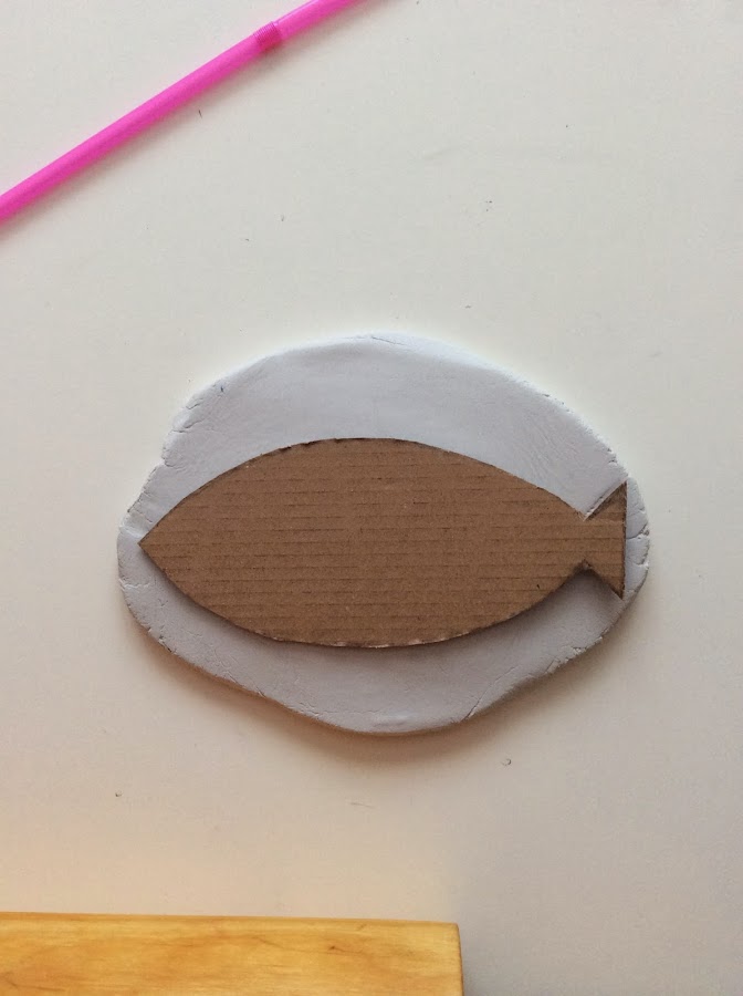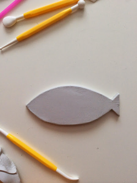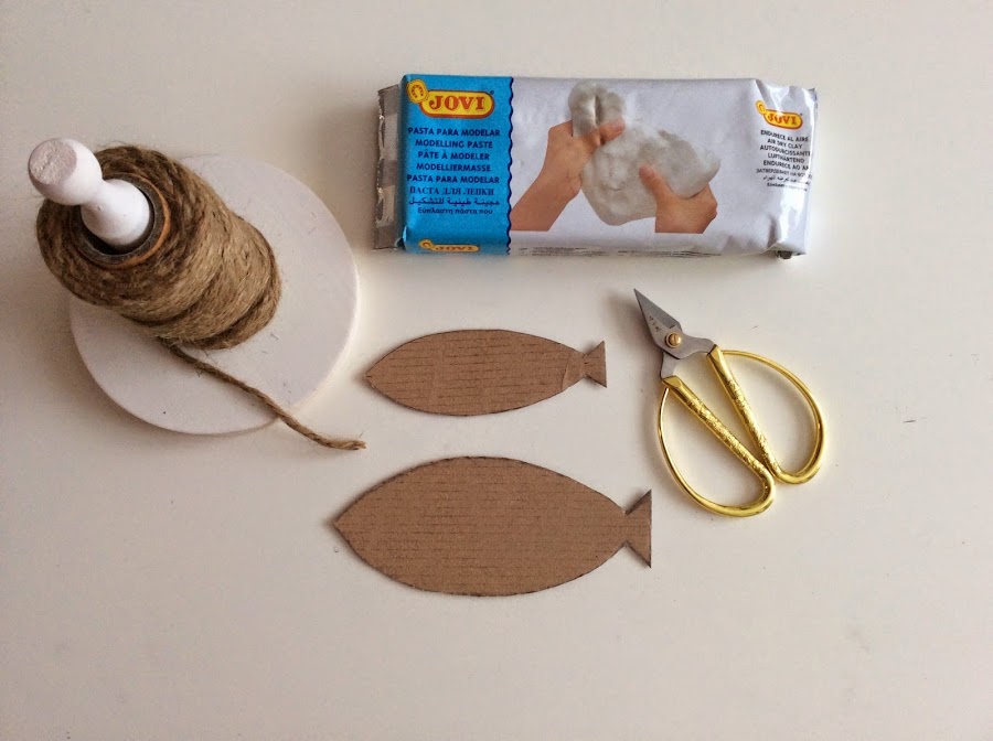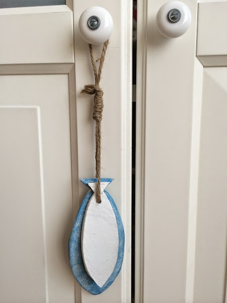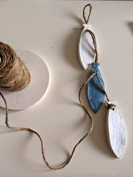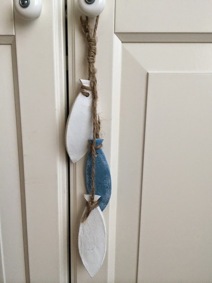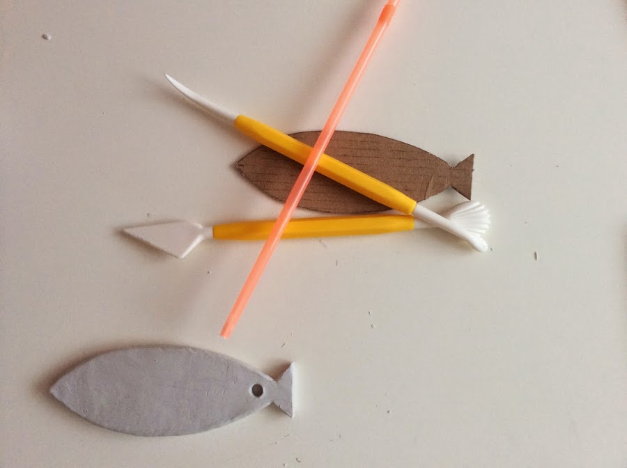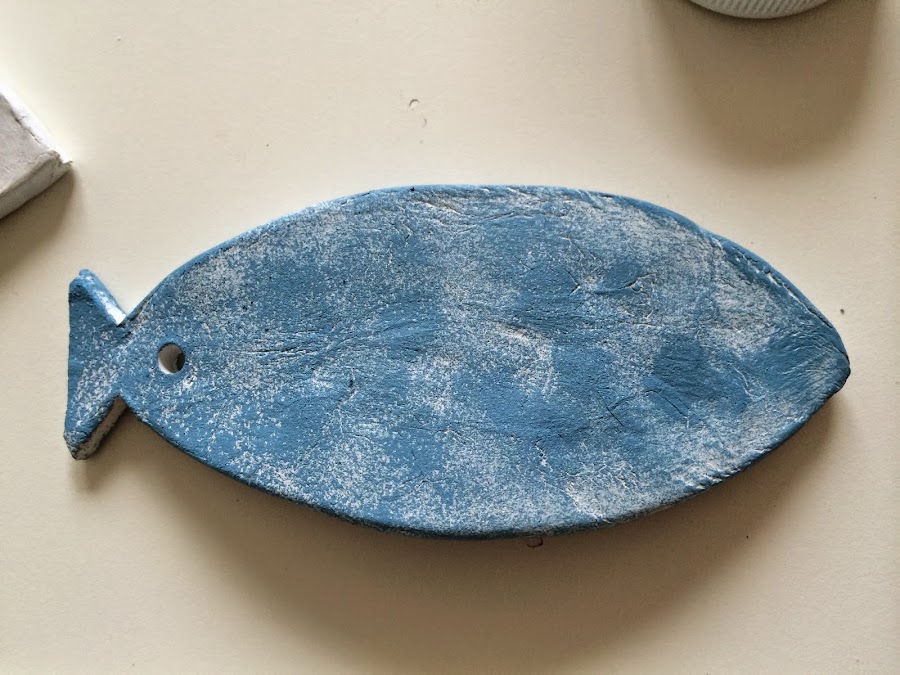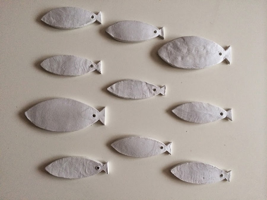 Una vez secos, pinté la mitad de los peces. Los pinté con ayuda de una esponja, a "toquecitos" para darle efecto desgastado.
