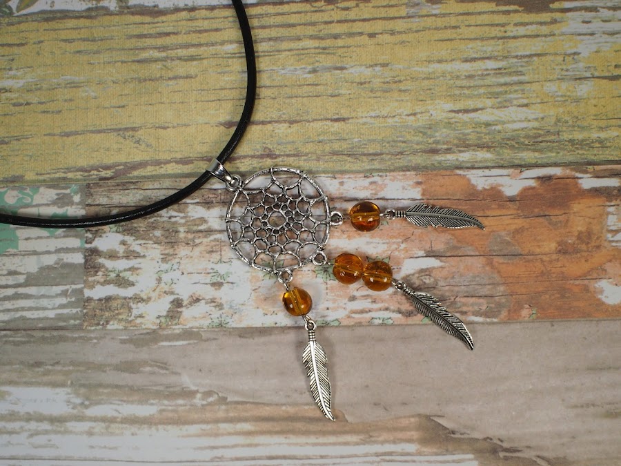 El ultimo día, os enseñe unos bonitos pendientes atrapasueños con adorno en morado. Hoy lo que os traigo es un bonito colgante atrapasueños, adornado con unas cuentas en color amarillo; lo que le da un punto diferente y divertido.