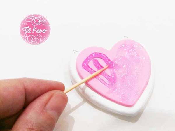 Y ponemos el corazón rosa clarito más pequeño encima del blanco y los dejamos secar 24h.