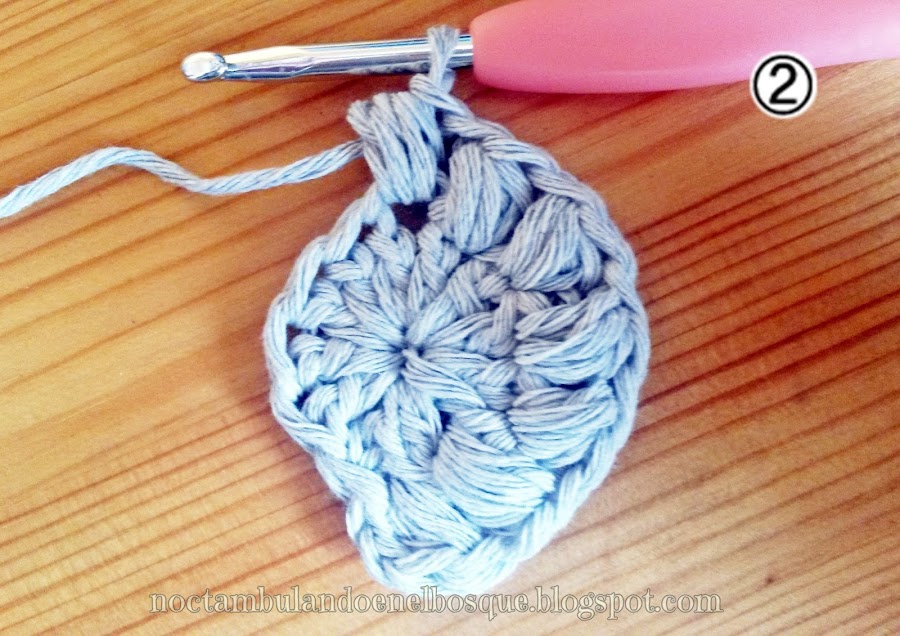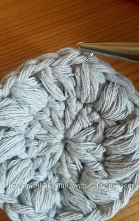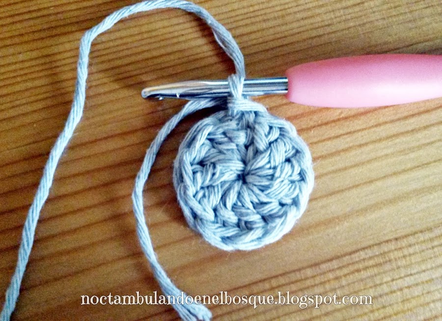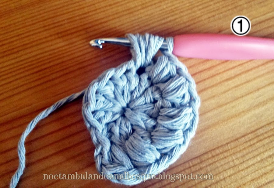 - Hacemos un anillo mágico de 12 pa y cerramos con punto deslizado.