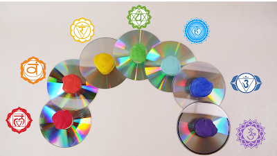 Con este objetivo decidí hacerlos con 7 Cds que serán la base y a cada uno de ellos los trabajaré con porcelana fría con el color correspondiente a cada uno de los chakras