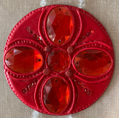 Pego con pegamento de silicona un adorno circular y lo presiono un poco para que se hunda.