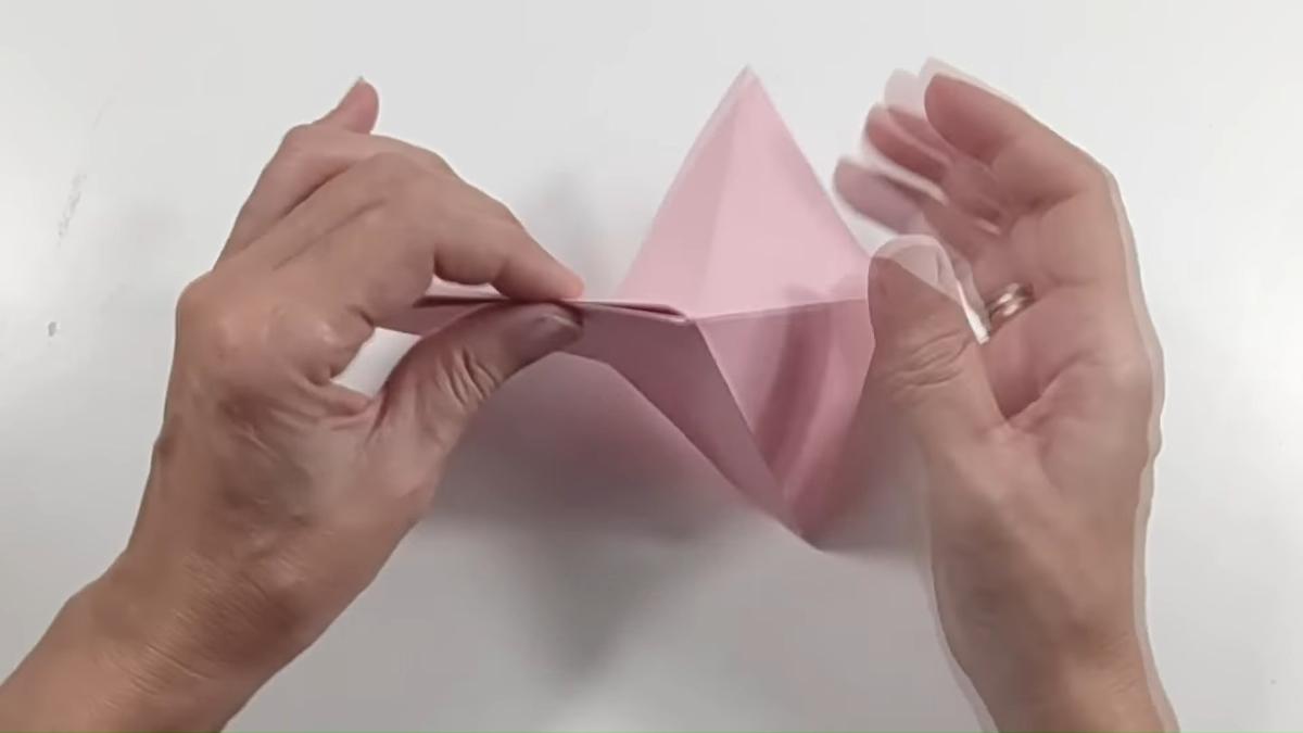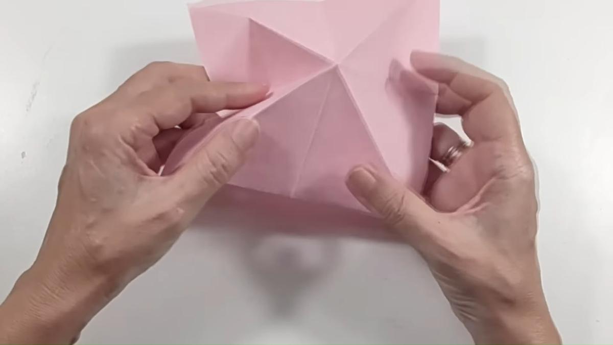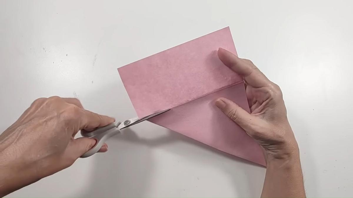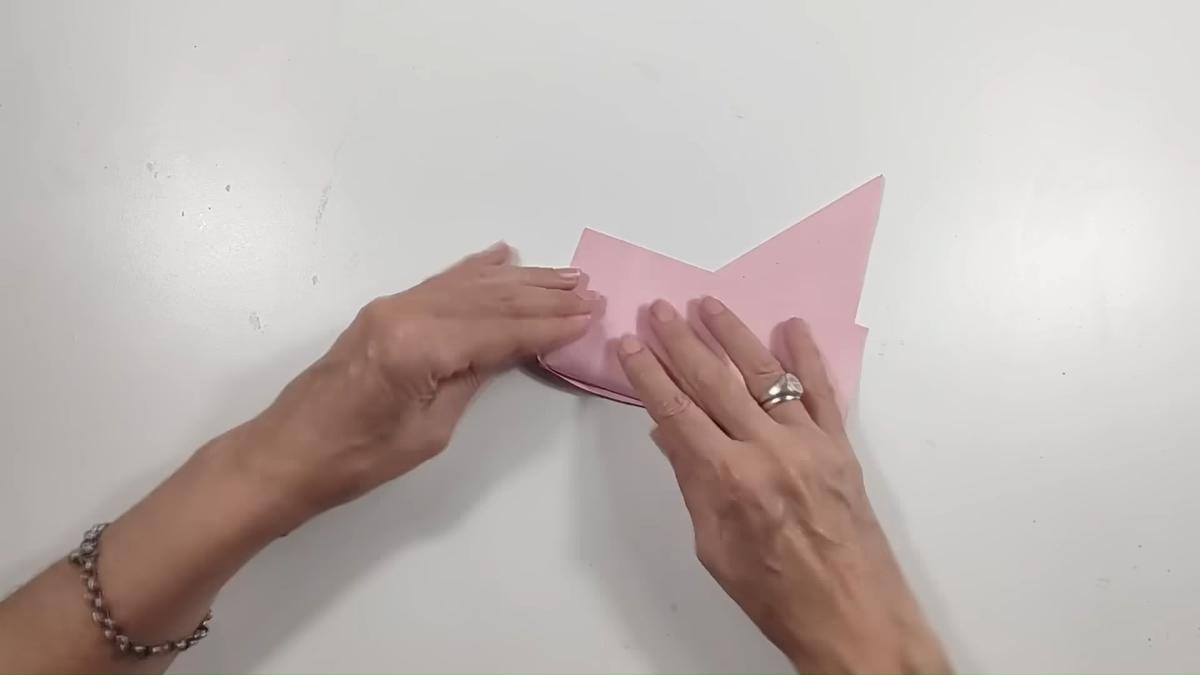 para que sea más fácil plegar de esta forma puedo hablar una vez más y hacer unas cortes redondeados en los extremos voy a abrir y al levantar estos lados hacia el vértice superior