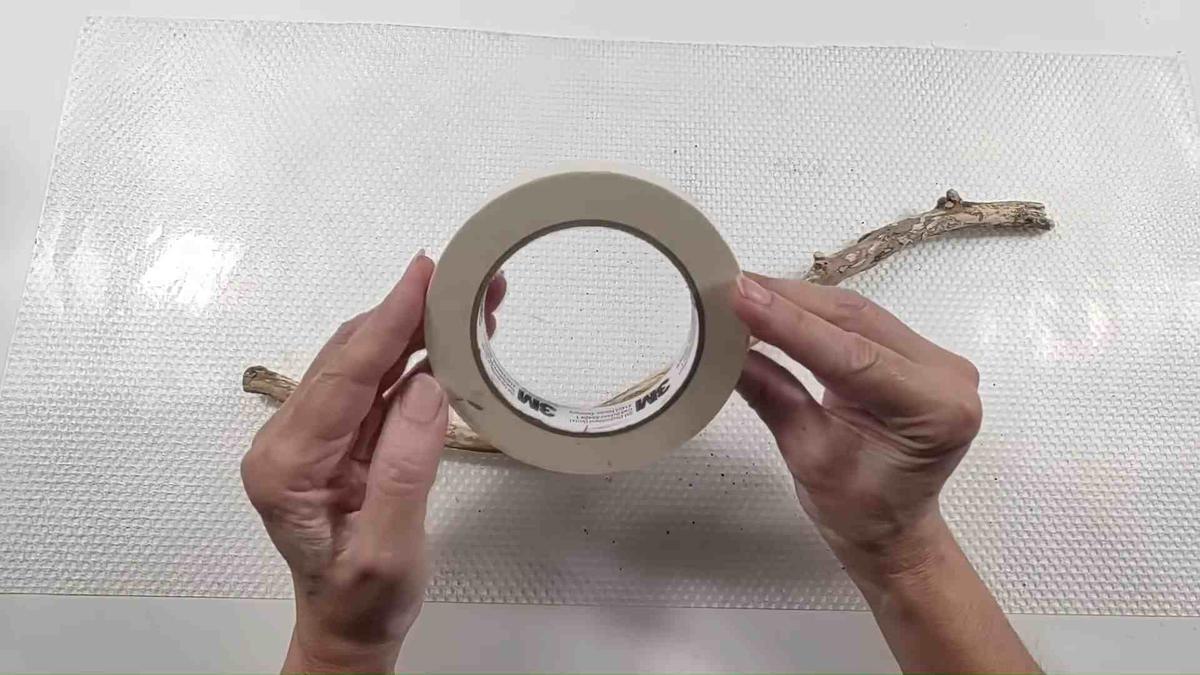 con un paño le voy a retirar el polvillo y con esta cinta de papel la voy a ir pegando en diferentes lugares a lo largo para hacer una reserva porque le quiero pintar con estas pinturas