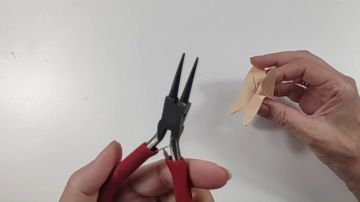 y con este tipo de pinza les voy a hacer un ganchito para poder pasarles el hilo