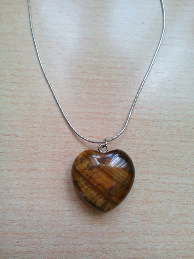Y ahora otro corazón, este no tiene nada especial, sólo que como ya sabéis los que seguís mi blog desde hace tiempo, el Ojo de Tigre es mi piedra favorita (junto con el cuarzo rosa), y cuando ví este colgante no lo dudé, me hice con el y lo llevo siempre puesto, ¿a que es una piedra muy bonita?