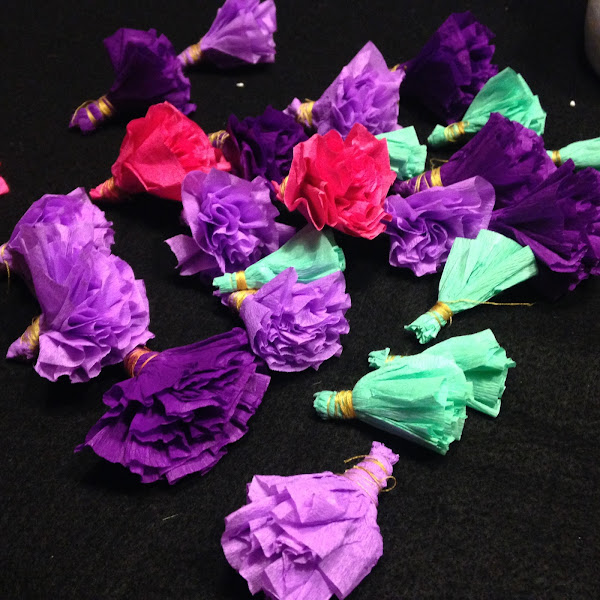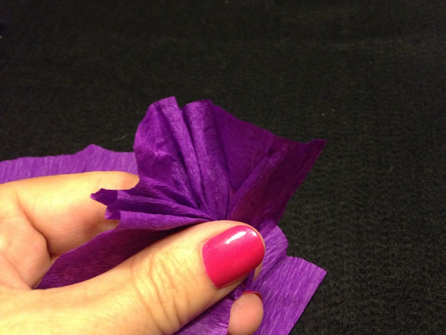 Atar la flor con hilo de coser para poder insertarla en el orificio que se hizo en la esfera