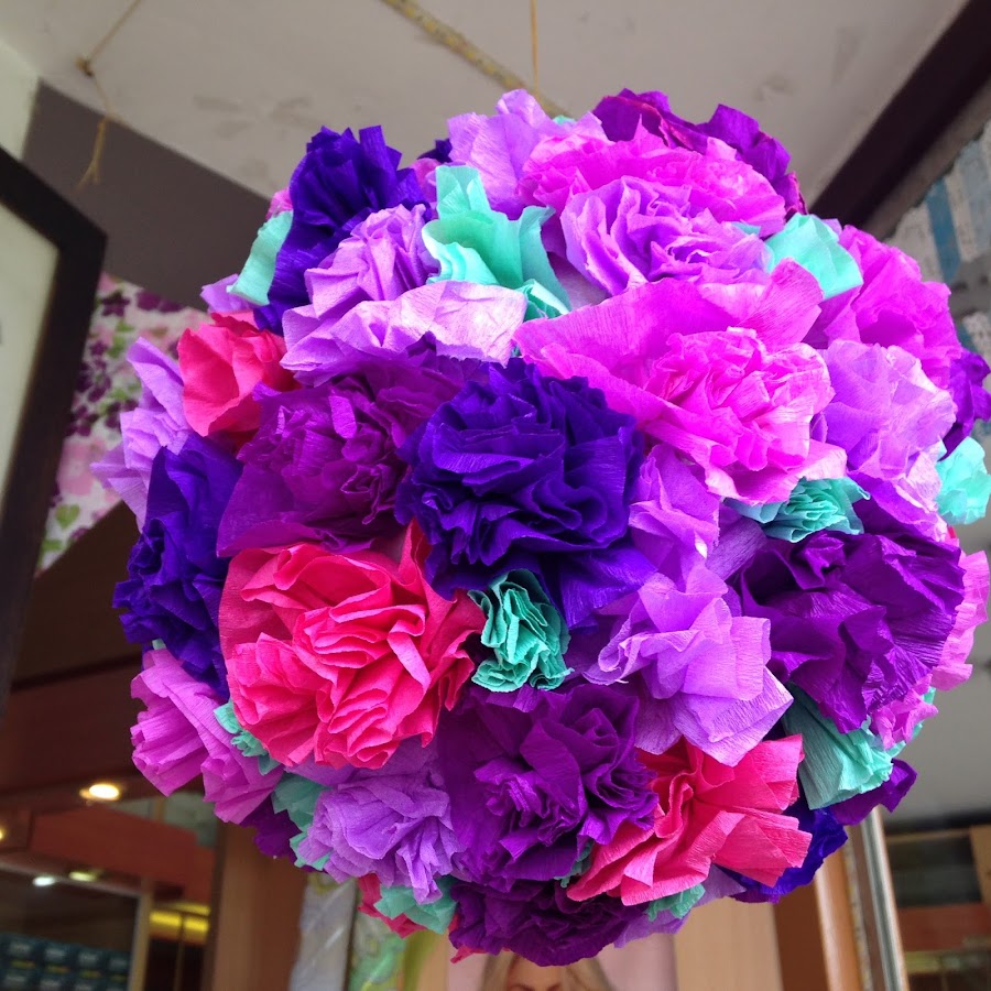 Como base usé esferas de telgopor, coloque un gancho para poder sostenerla.