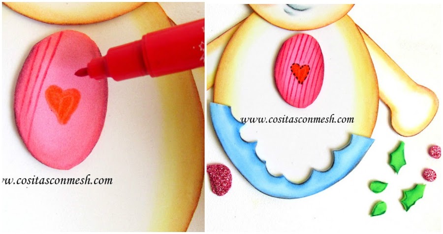 Pinto un corazoncito y hago lineas con plumón rojo.