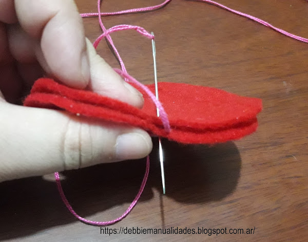 y paso nuevamente la aguja por el interior de ese "rulo"