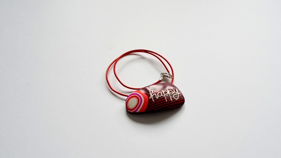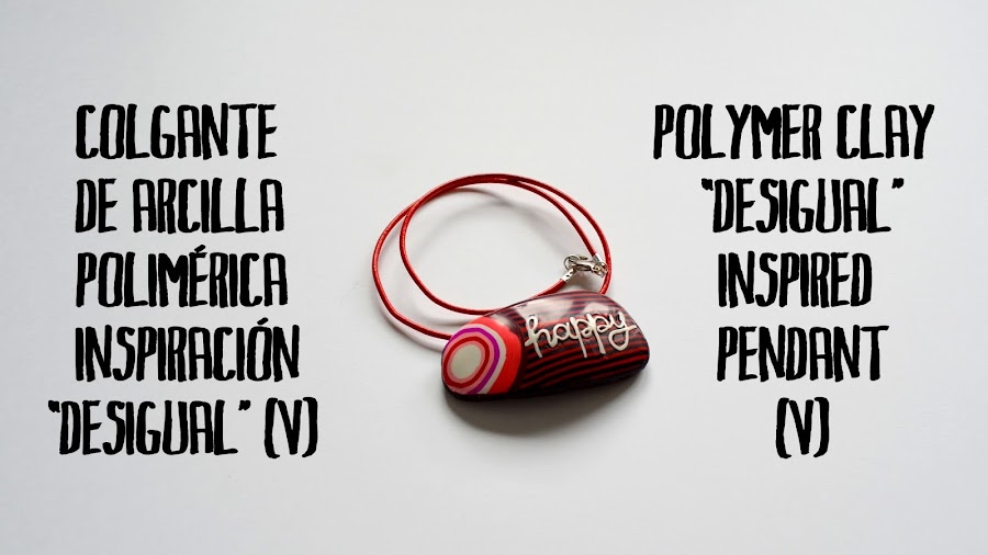 Para la realización del colgante, he empleado una técnica muy frecuente en la arcilla polimérica, como son las murrinas o cañas (del inglés cane). Una murrina es un bloque, por lo general cilíndrico, en el que un dibujo se repite en toda su longitud, de manera que si cortamos lonchas, todas tendrán el mismo dibujo a lo largo de la murrina.